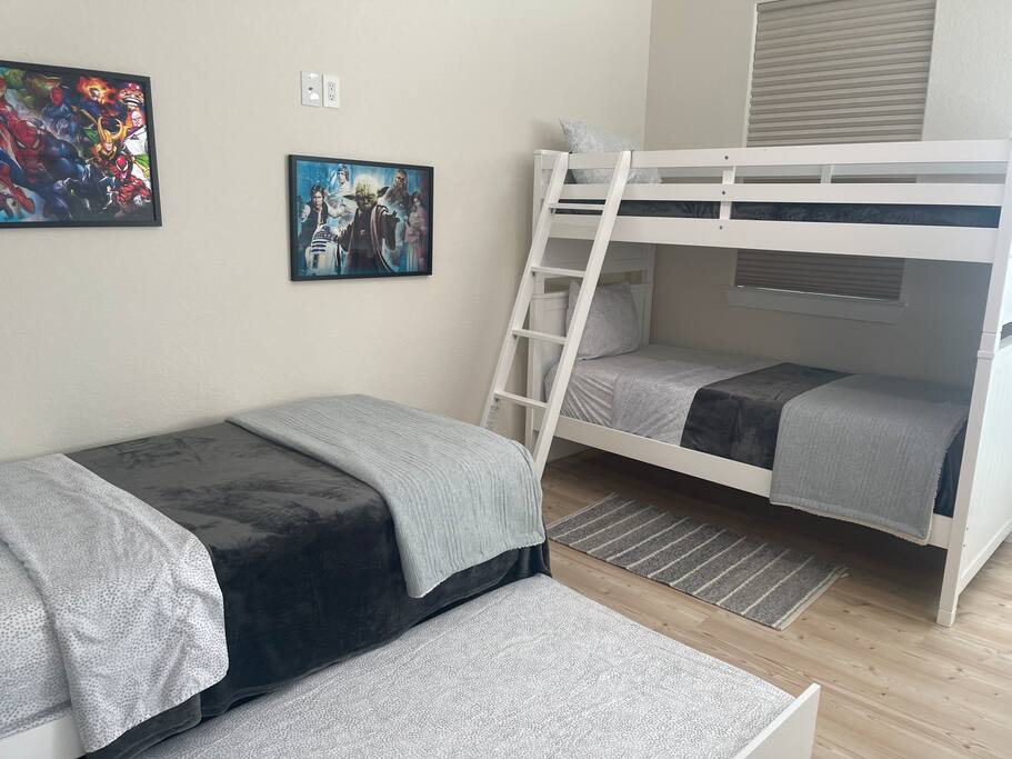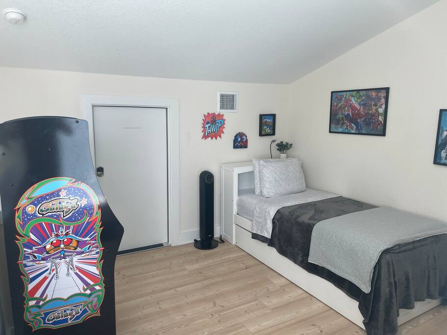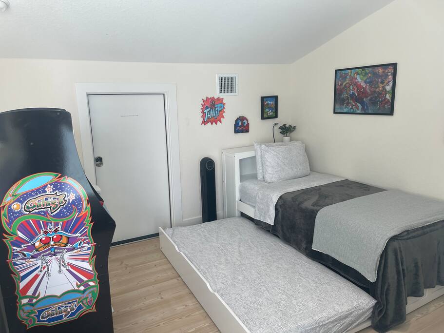The third floor is a favorite for many! It features a cozy loft with two high-quality bunk beds that sleep four, ideal for kids or groups. Plus, a retro arcade game with over 50 classic games will keep everyone entertained for hours.