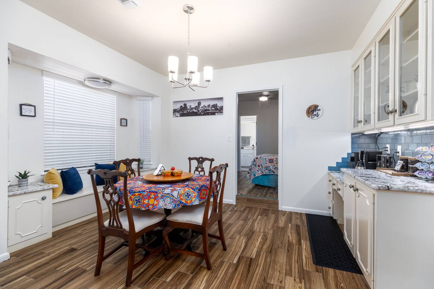 Breakfast area for 6 beside the coffee bar