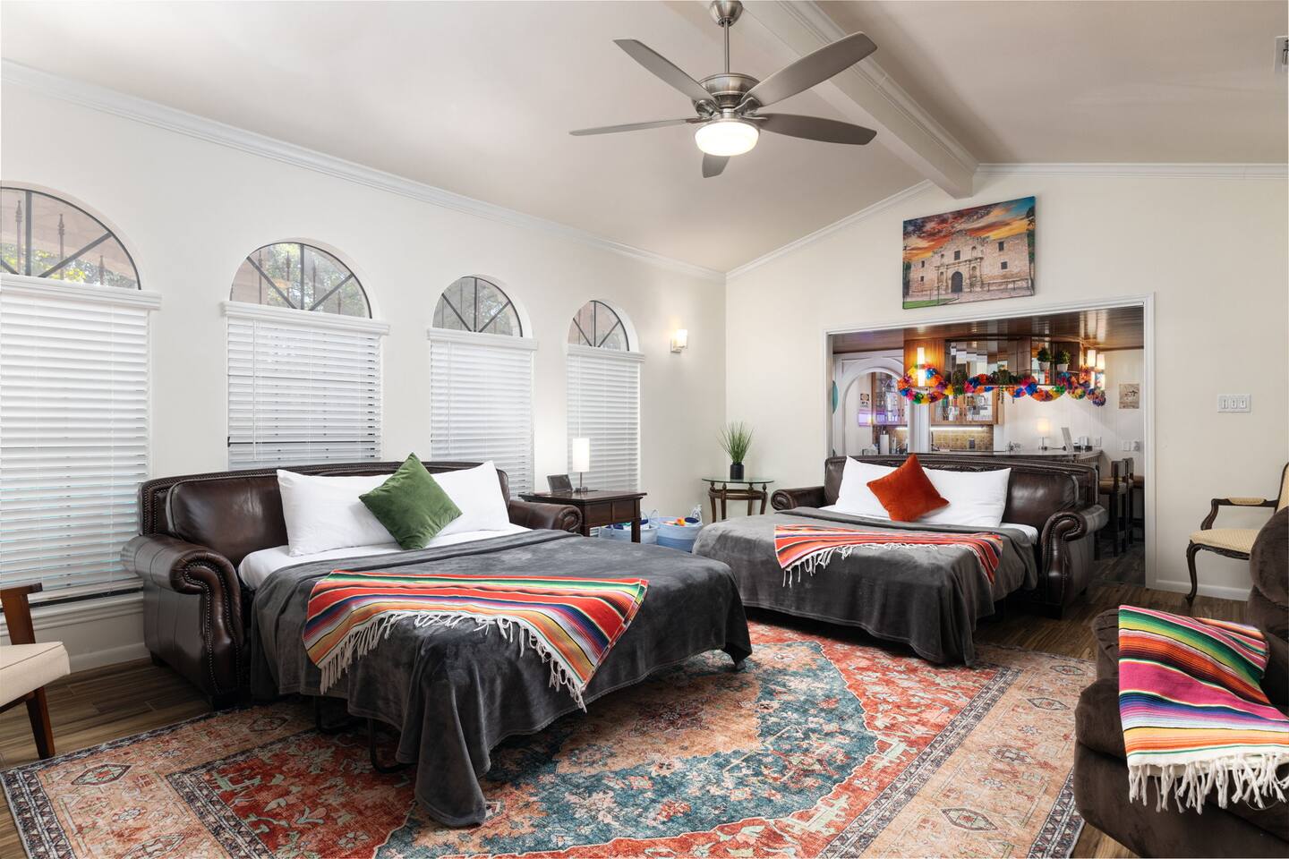 Family Room: Two queen sleeper sofas with high-quality mattresses