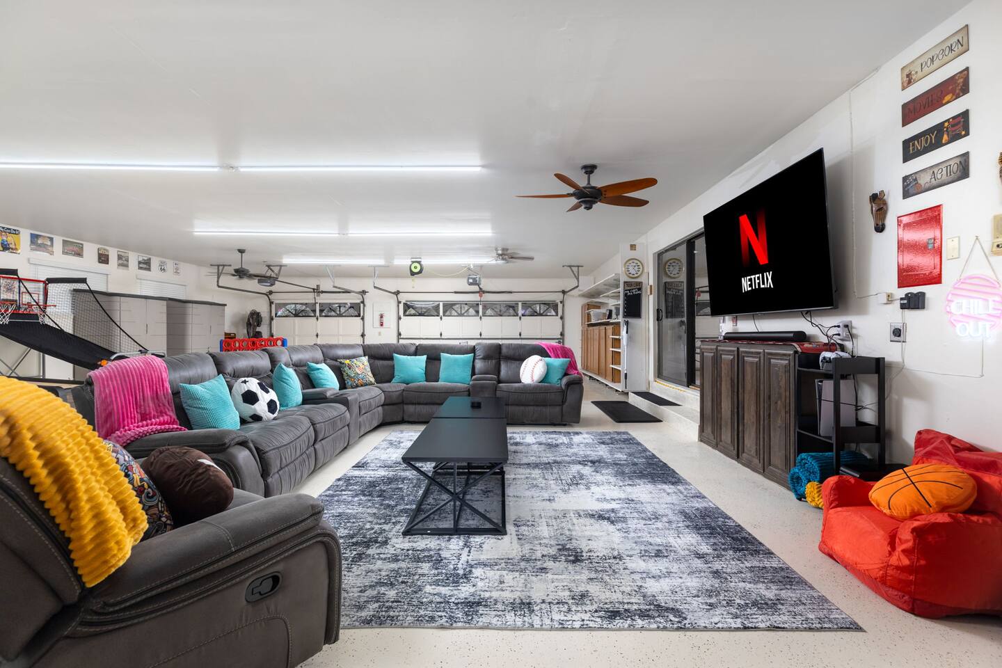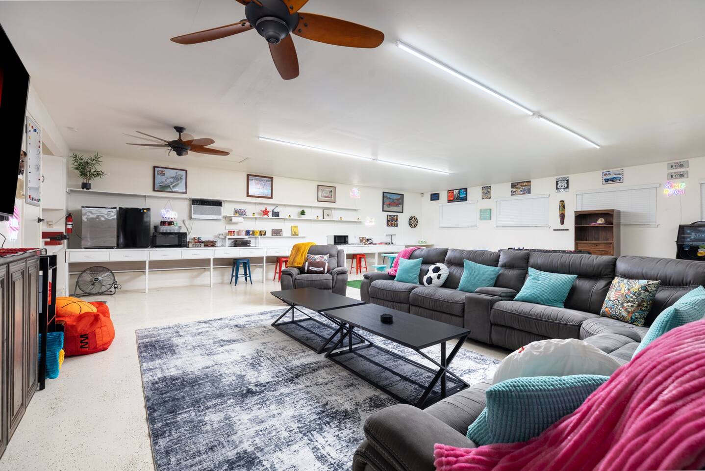 Huge sectional sofa, kitchenette, snacks & sodas for movie night